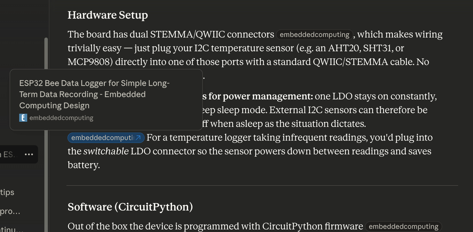 Consider a recent chat of mine with Claude, where I was trying to get information on a temperature logging sensor. The source of its information looked very familiar: