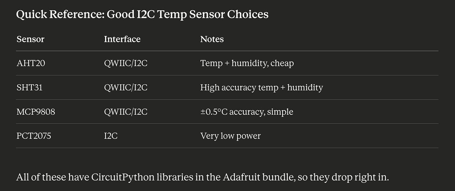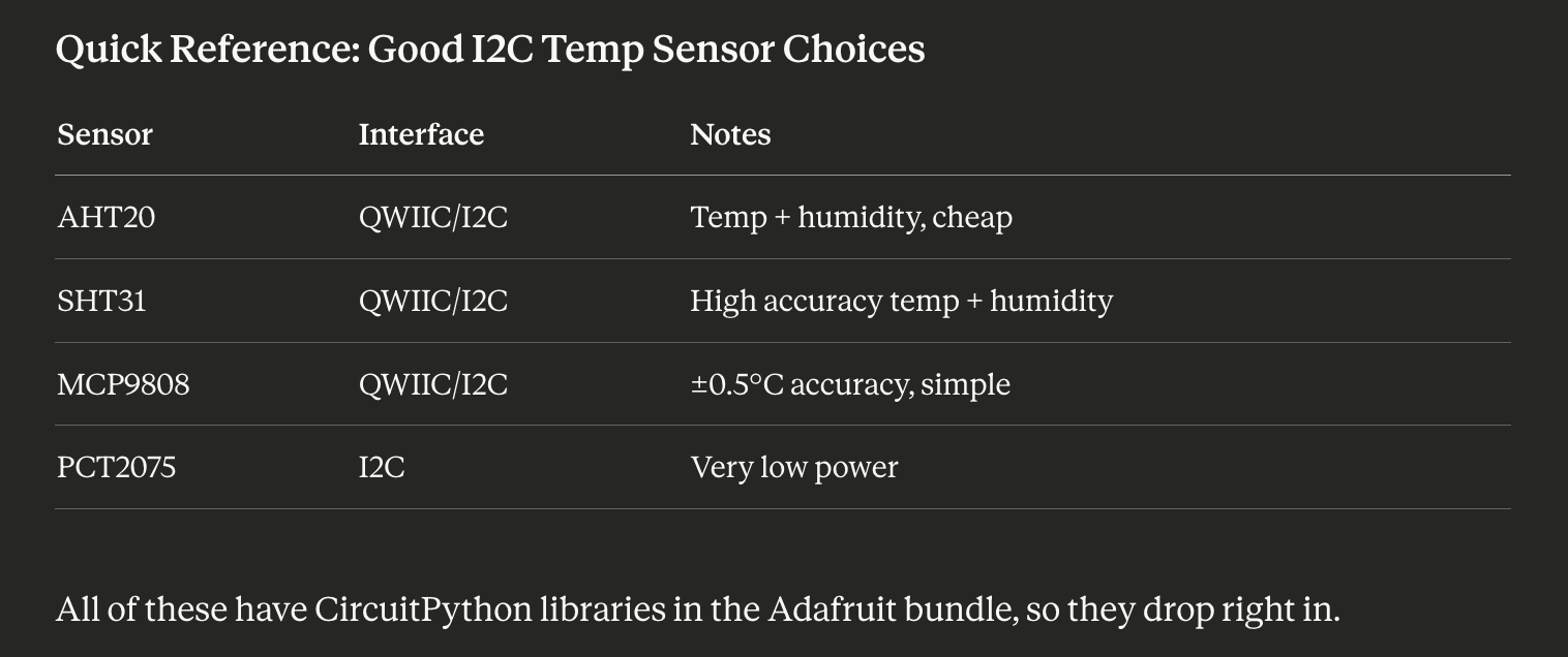 Yes, some percentage of the facts that Claude spouted back to me were actually written by ME a few years prior. And upon further inquisition of Claude, I decided that the BMP180 temperature/pressure sensors that I HAD ALREADY ordered on Amazon was inferior to an MCP9808 device that it informed me about.