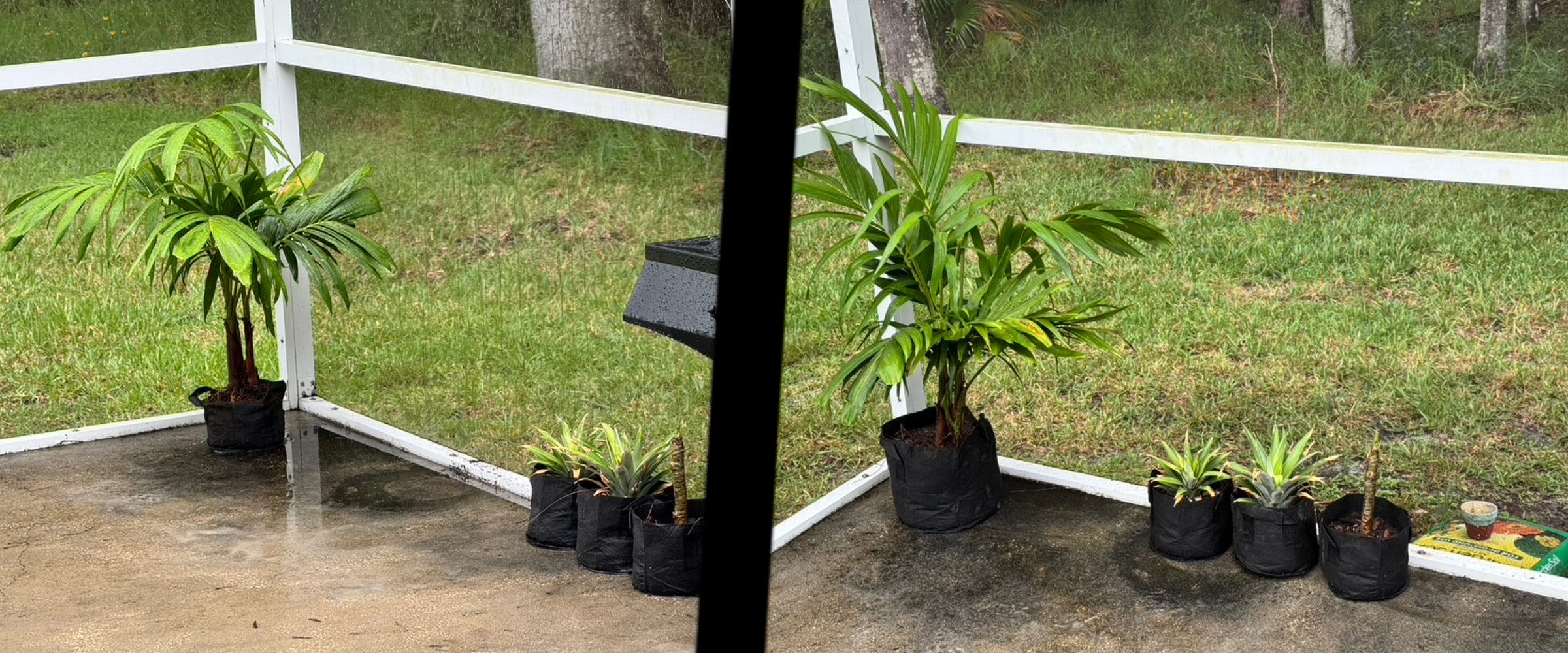 In reality, it’s probably better to level your porch and/or install drains to begin with, but this appears to make things much better–if not perfect–at a fraction of the cost and effort. Also, I like having plants around. All bets are off if we get a really sustained storm/hurricane, but I will cross that bridge when I come to it.