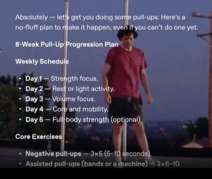 ChatGPT can help you work out. Apparently. Image [screenshot] Verification, verification, verification! I’m not sure this can be blamed directly on AI Jail, but you may have noticed that verification often requires much more work than putting in a strong password. My particular credit union has me verify after logging in, sometimes more than one time during a session.